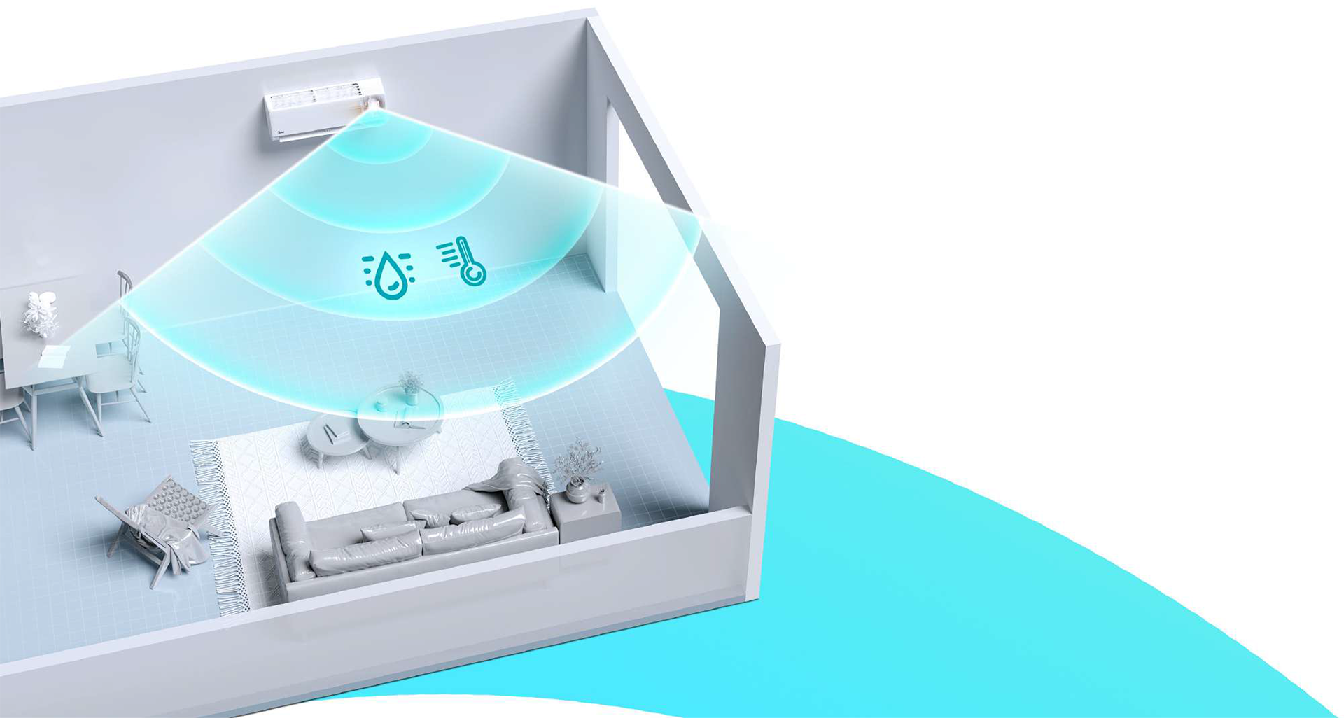 Usmjereni izlaz zraka automatski se pomiče vodoravno i okomito, usmjeravajući ugodan i rashlađen zrak tako da ispuni svaki kut prostorije
