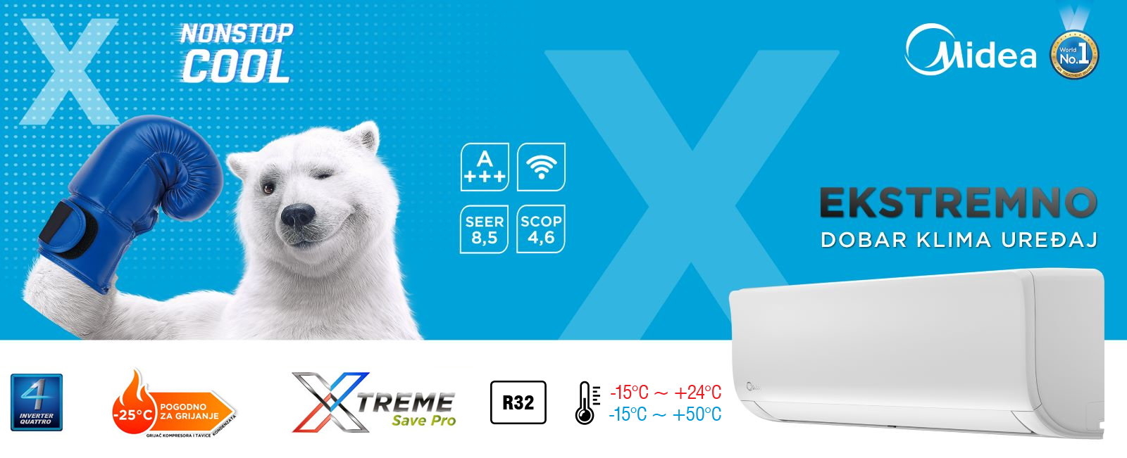 XTREME INVERTER SAVE je toliko moćan kao što je i tih, sposoban jamčiti optimalni odmor za svakog člana obitelji. Opremljen je vodećom Midea tehnologijom izvrsnih performansi s pažnjom na potrošnju.