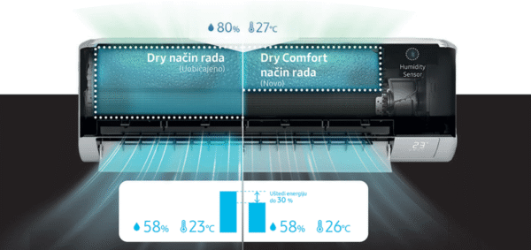 ¹ Značajka Dry Comfort dostupna je u svim zemljama u kojima su ugrađene WindFree™ jedinice. Međutim, prednost ove značajke dodaje veću vrijednost u vlažnim i tropskim klimama.