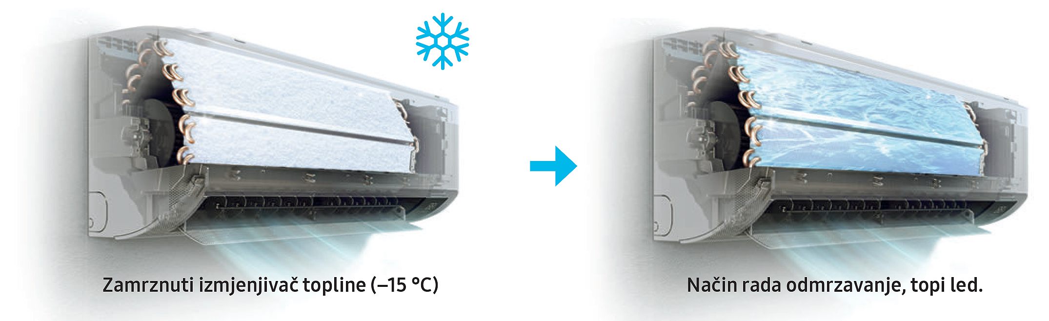 ¹ Izvješće tvrtke Intertek br.: RT20E-S0047 Datum: Dana 2. prosinca 2020. Na temelju prikupljenih podataka prihvaća se sljedeća pretpostavka: Funkcijom „Wash Clean (Domestic)/Freeze Wash (Overseas)” Samsung klima-uređaja moguće je ukloniti više od 90% bakterija (Escherichia coli ATCC 8739, Staphylococcus aureus ATCC 6538) koje se nalaze na površini izmjenjivača topline.
