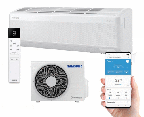 Samsung je predstavio prvi klima uređaj s WindFree tehnologijom. Nježno i ravnomjerno raspršuje svježi zrak kroz tisuće mikro-rupa, te stvara uvjet „mirnog zraka". Omogućuje ljudima da udobno žive, rade i opuštaju se, t ne doživljavaju neugodne hladne propuhe. Samsung 2020. godine predstavlja potpuno novo Raspon bez vjetra u moderniziranom dizajnu, koji sadrži nove inteligentne tehnologije za poboljšana udobnost u zatvorenom prostoru i poboljšana energetska efikasnost.