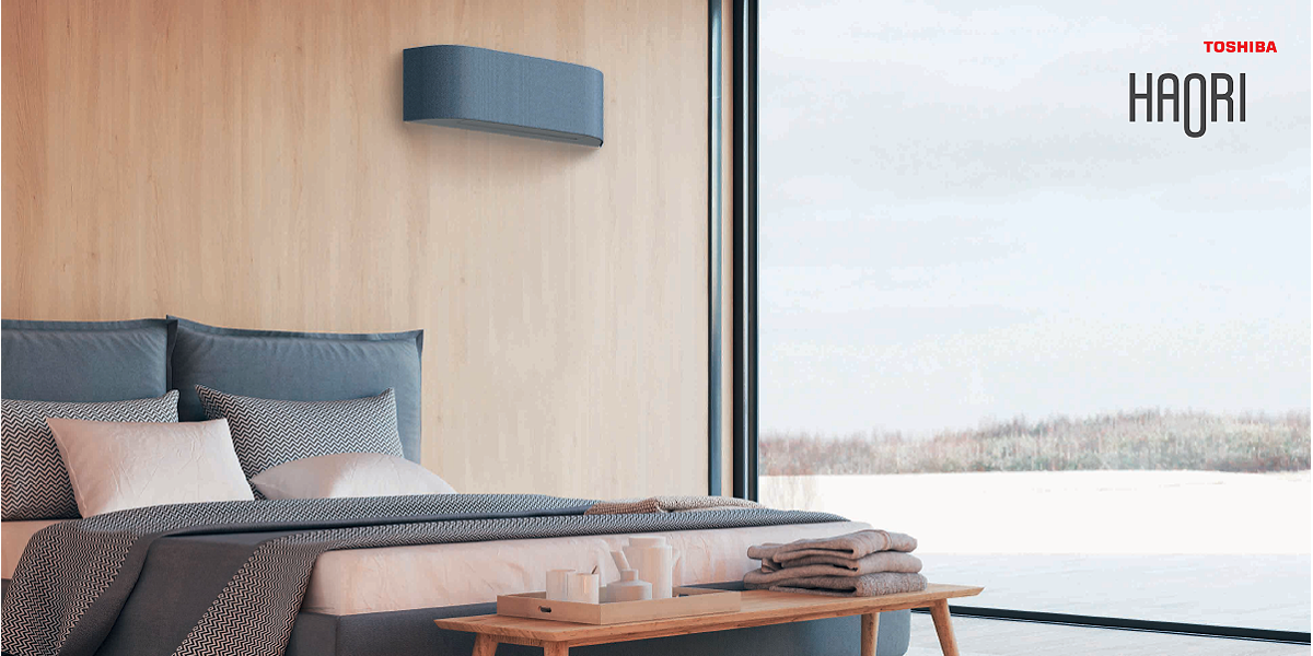 TOSHIBA HAORI - komplet zidna unutarnja i vanjska jedinica - INVERTER Dizajnerska zidna jedinica gornje srednje klase sa svestranim konceptom navlaka od tkanine, maksimalne energetske učinkovitosti i serijski integriranim WiFi modulom.